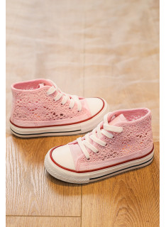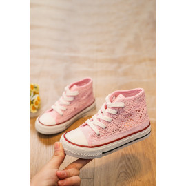 Lot de 12 : Baskets haute rose dentelles (tailles 24 à 29)