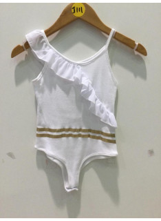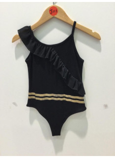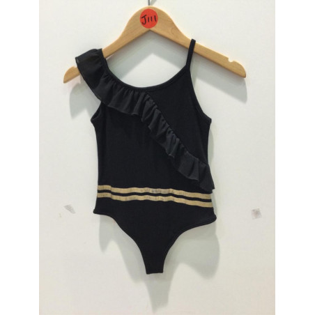 Body à bretelles col rond et déco volant.