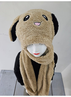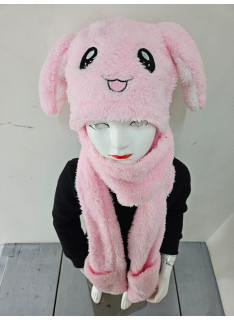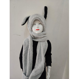 Bonnet-écharpe avec oreilles de lapin (appuyer sur le bout de l'écharpe pour que l'oreille se lève).