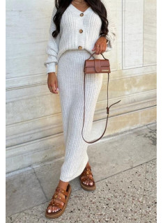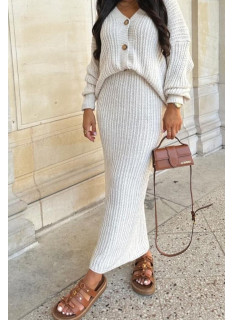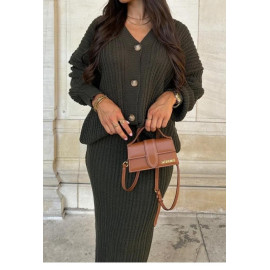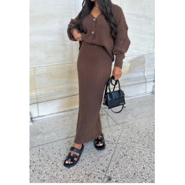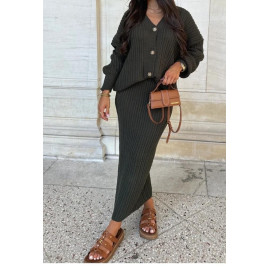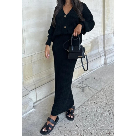 Ensemble Gilet-Pull boutonné aux manches longues & Jupe-Pull coupe longue.