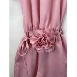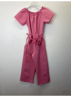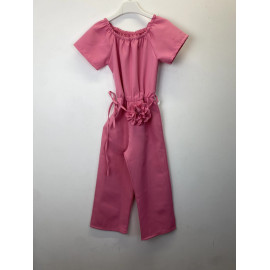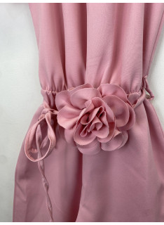 Combinaison pantalon avec encolure élastiquée et une ceinture fleurie.