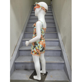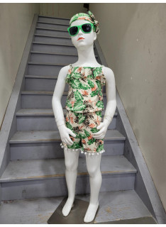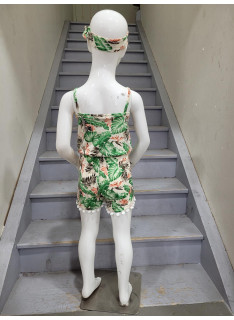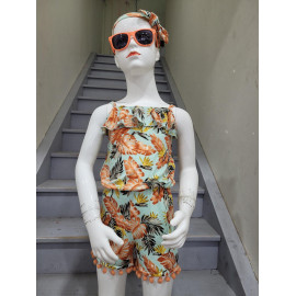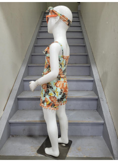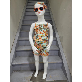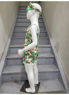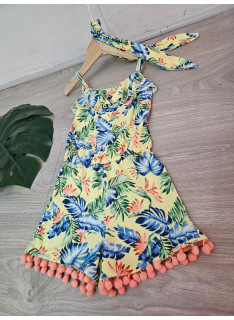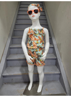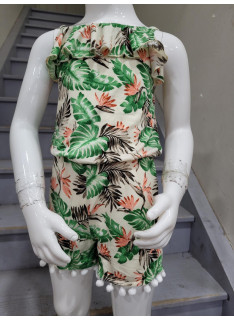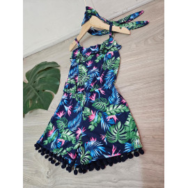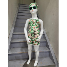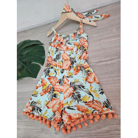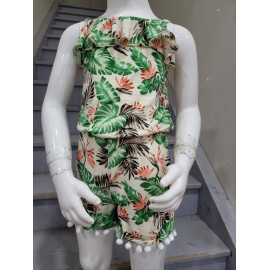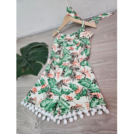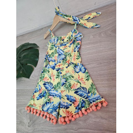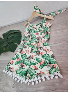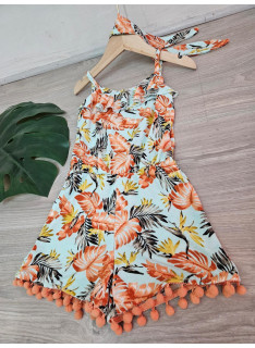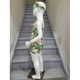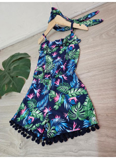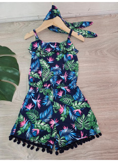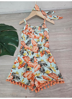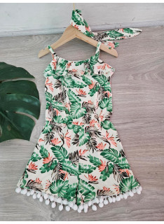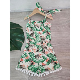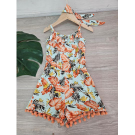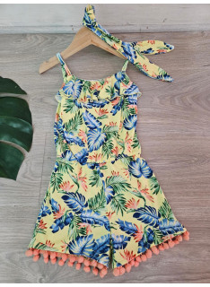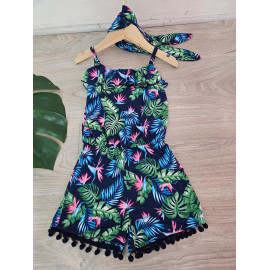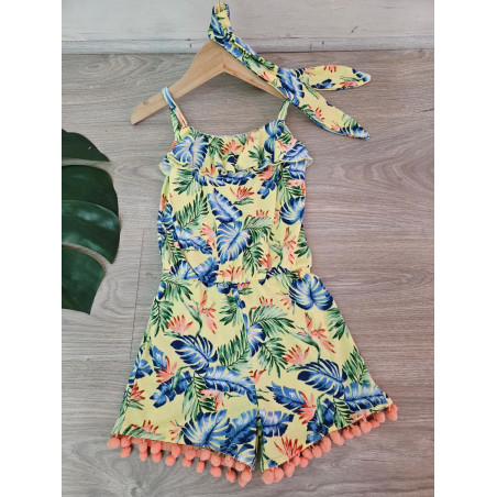 Combinaison-Short à l'imprimé TROPICAL avec des bretelles et son bandeau assorti.