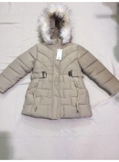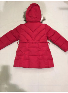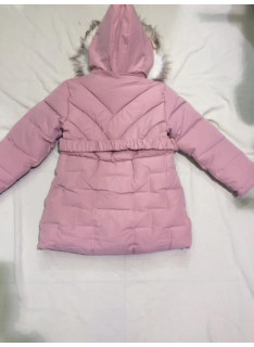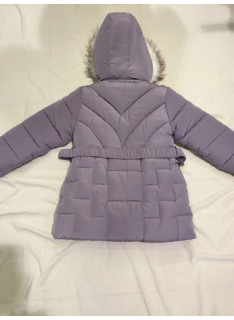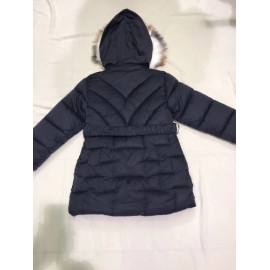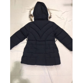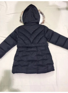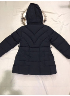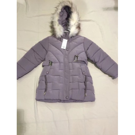 Blouson doudoune avec capuche fausse fourrure et manches longues.
