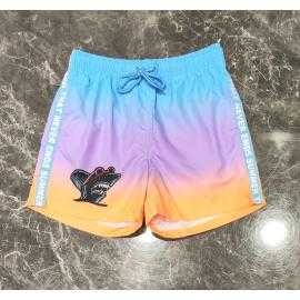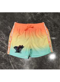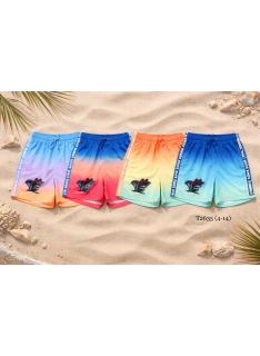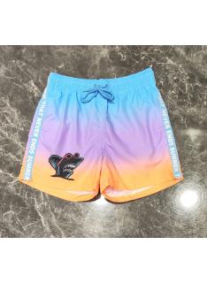Short de bain garçon avec effet dégradé multicolore, taille élastiquée avec cordon de serrage et imprimé requin pour un look estival dynamique et moderne.
