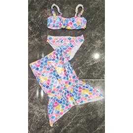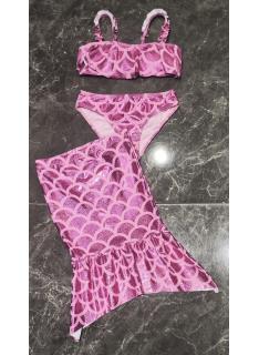 • maillot bain fille 3 pieces sirene brillant jupe mode enfant grossiste