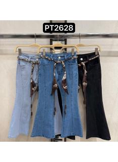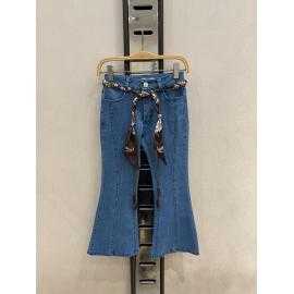Jean fille coupe flare au style chic et moderne, sublimé par un foulard ceinture imprimé avec finition perles pour une touche élégante et tendance.