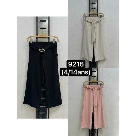 Pantalon fille à coupe large et fluide, sublimé par une ceinture intégrée avec boucle bijou élégante pour un rendu chic et raffiné.