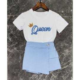 Lot de 6 – T-shirt fille blanc imprimé Queen