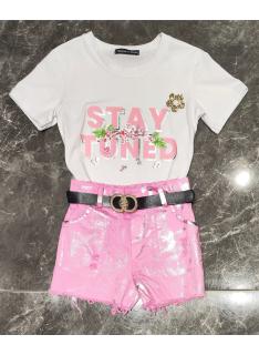 T-shirt fille en coton avec manches courtes et imprimé tendance.