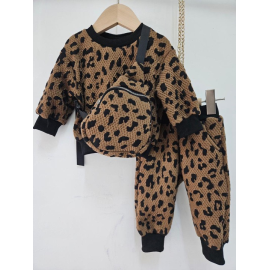 Ensemble 3 Pièces Bébé Motif Léopard Texturé avec Sac Banane