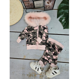 Ensemble bébé camouflage 2 pièces – Veste zippée à capuche fourrée & pantalon