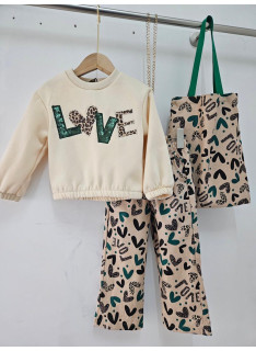 Ensemble fille 3 pièces “LOVE” – Sweat, pantalon imprimé & sac assorti