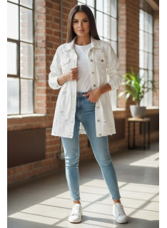 Idéale pour la mi-saison, cette veste blanche illumine toutes les tenues et s’adapte aussi bien aux looks du quotidien qu’aux sorties plus habillées.