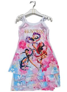 Robe d’été fille au style coloré et tendance avec imprimé Huntrix très apprécié des enfants.