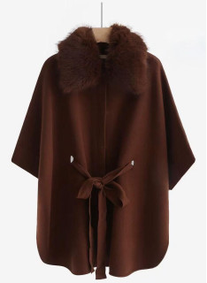 Détails : Col large en fausse fourrure, ceinture à nouer, coupe ample/cape.