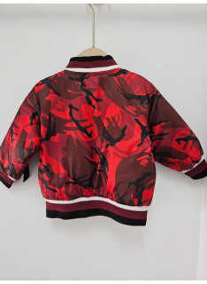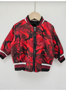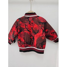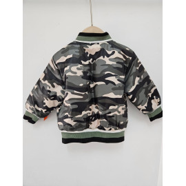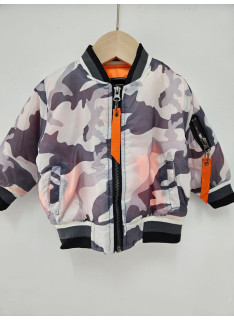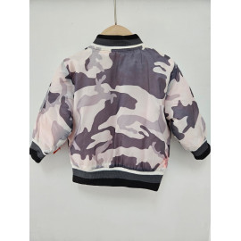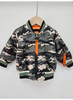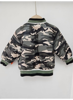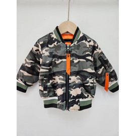 Blouson bomber au motif camouflage, fermetures et poches.