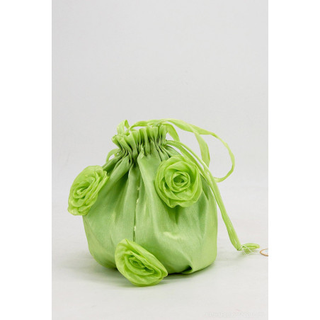 Bourse de soirée et cérémonie en satin avec roses décoratives.
