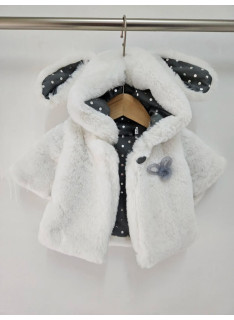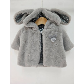 Veste pour bébé avec oreilles lapin et intérieur à pois.