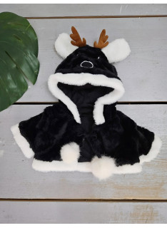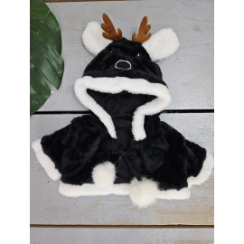 Cape pour bébé en fausse fourrure noire et bordure blanche avec Cornes de Renne