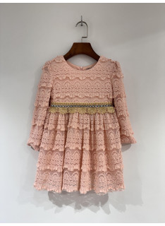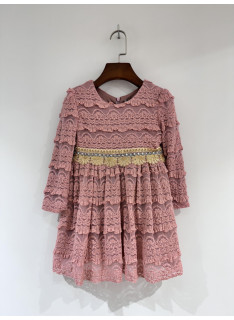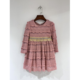 Robe de fête en dentelle avec une ceinture décorative avec perles.