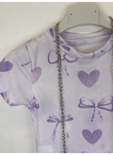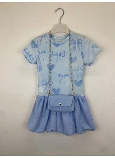 Robe avec motifs cœurs et nœuds avec un sac assorti.