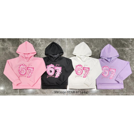 Offrez à votre enfant un style à la fois tendance et confortable avec ce sweat à capuche issu de la collection STAR 67 (Référence SW2250). Conçu pour les enfants de 4 à 14 ans, ce modèle se distingue par son impression graphique moderne combinant les chiffres '67' et les inscriptions 'six' et 'seven' agrémentées de petites étoiles.