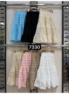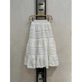 Elegant girls long skirt featuring layered ruffles and delicate broderie details, ideal for spring summer collections.