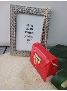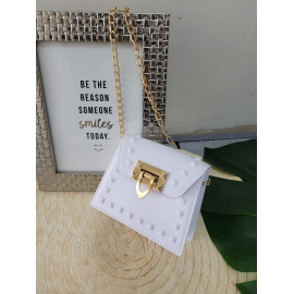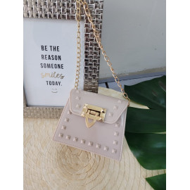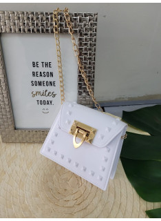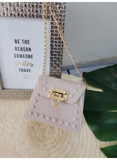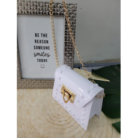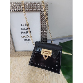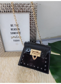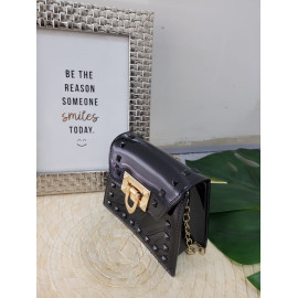 Ideal bandoulière for a party or ceremony, in varnish with nailed details and golden chain.