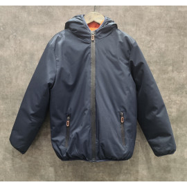 This reversible hood jacket for boy offers two distinct styles in one garment, making it extremely versatile for mid-season.