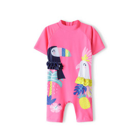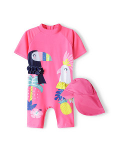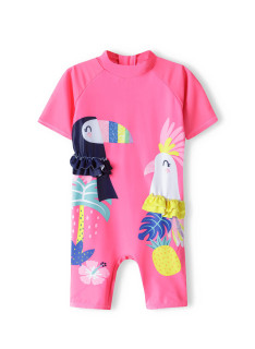 Combishort beach outfit: with a bath hat, pink color