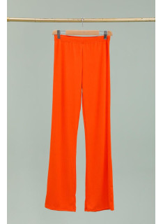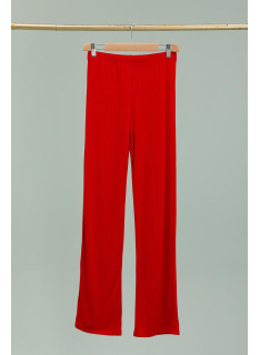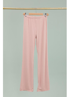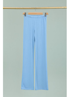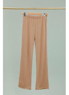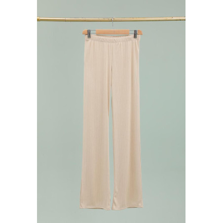 Fluid pants in ribbed mesh, endowed with a elastic waist For optimal comfort and easy threading. Its Straight cut slightly flared Offers an elegant fell while ensuring great freedom of movement.