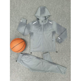 This sports set for child is distinguished by its Modern design with graphic patterns, ideal for an urban, dynamic and trendy look. It consists of a Zipped hooded jacket and a Matching trousers, designed to offer comfort, resistance and freedom of movement.