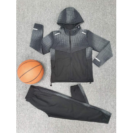 The hooded jacket present Elegant geometric patterns on the top, associated with a Full zipper and practical pockets. The Reflective bands Add a sporty touch while improving visibility during external activities. Its lightweight material effectively protects against wind and freshness.