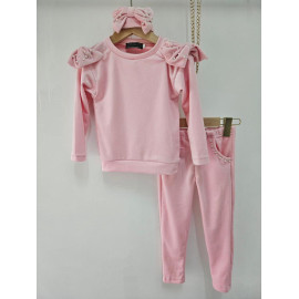Crack for this adorable soft velvet girl set, ideal for combining comfort and style daily. Composed of three assorted rooms - a long-sleeved sweatshirt, comfortable pants and headband with node - this set is perfect for small fashionistas.