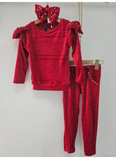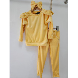 Girl Set Velvet 3 Pieces - Sweat, Pants & Assorted Headband