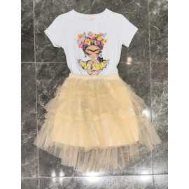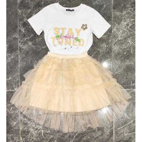 Elegant girls layered tulle skirt with a chic princess-inspired volume.