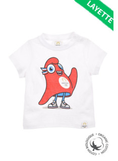 Baby T.Shirt MASCOTTE "Phryge" JO PARIS 2024 with short sleeves and round neck, made of organic cotton.