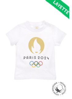 Baby T.Shirt MASCOTTE "Phryge" JO PARIS 2024 with short sleeves and round neck, made of organic cotton.
