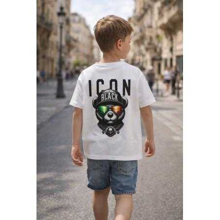 Boys short sleeve t-shirt featuring an ICON print on the back. Its modern and trendy visual brings an urban touch to kids fashion collections.