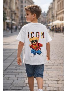 Boys short sleeve t-shirt featuring an ICON print on the back. Its modern and trendy visual brings an urban touch to kids fashion collections.