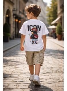 Boys short sleeve t-shirt featuring an ICON print on the back. Its modern and trendy visual brings an urban touch to kids fashion collections.