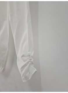 White legging with ruffled ankles with buttons.