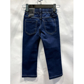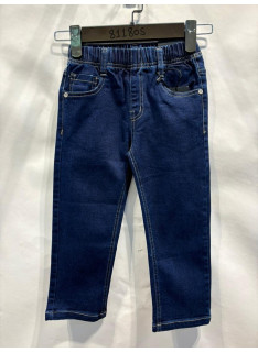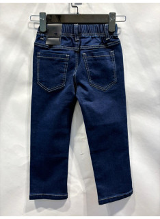 Blauwe spijkerbroek, slim, elastiek, voor- en achterzakken, comfortabel.