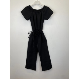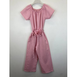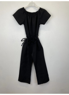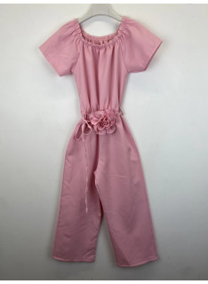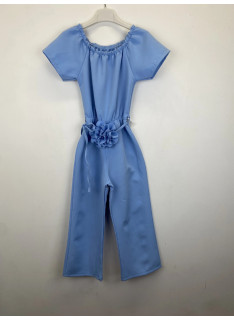 Jumpsuit met elastische halslijn en bloemenceintuur.