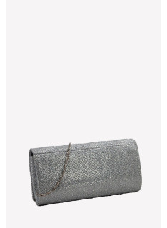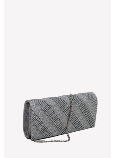 Een avondzak en ceremonie met zilveren glitters met diagonale patronen.
