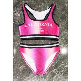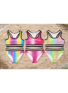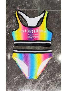 Stijlvolle meisjes 2-delige bikini met sportieve top, fijne gekruiste bandjes op de rug, meerkleurig kleurverloop en bijpassend broekje met brede contrasterende tailleband.