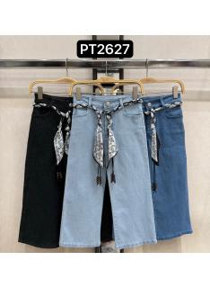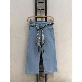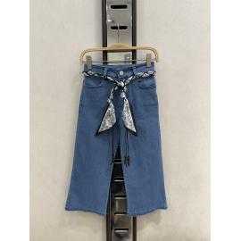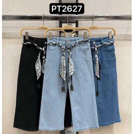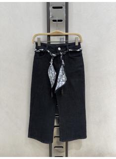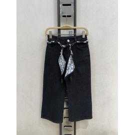Stijlvolle meisjes jeans met wijde pasvorm, afgewerkt met een bedrukte sjaalriem en kralendetail voor een elegante boho uitstraling.
