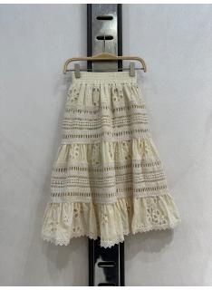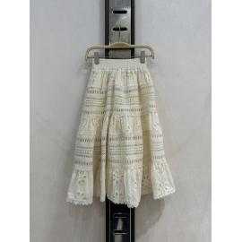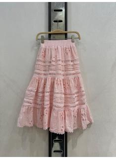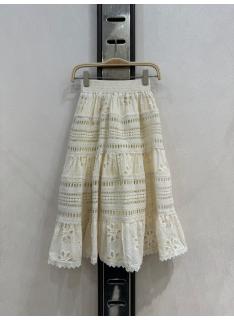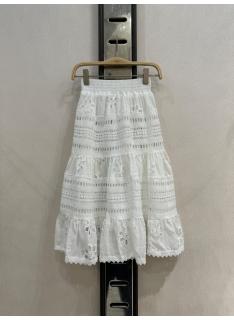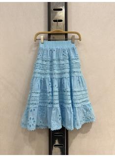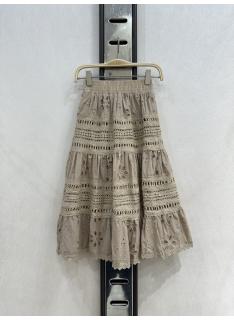 Lange meisjesrok met elegante ruches en verfijnde broderie details, perfect voor een trendy zomerse look.
