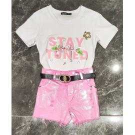 Trendy meisjes katoenen t-shirt met korte mouwen en modieuze print.