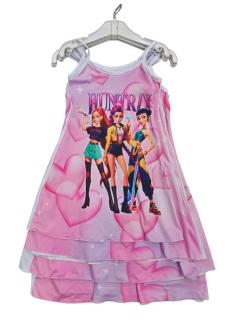 Set van 6 – Meisjes zomerjurk Huntrix print pastelroze – Kinderkleding